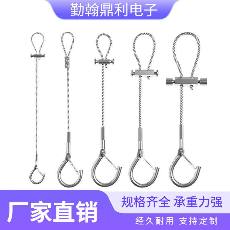 现货广告牌钢丝绳吊码自锁线器锁扣不锈钢钢丝绳吊具钥匙圈挂画器