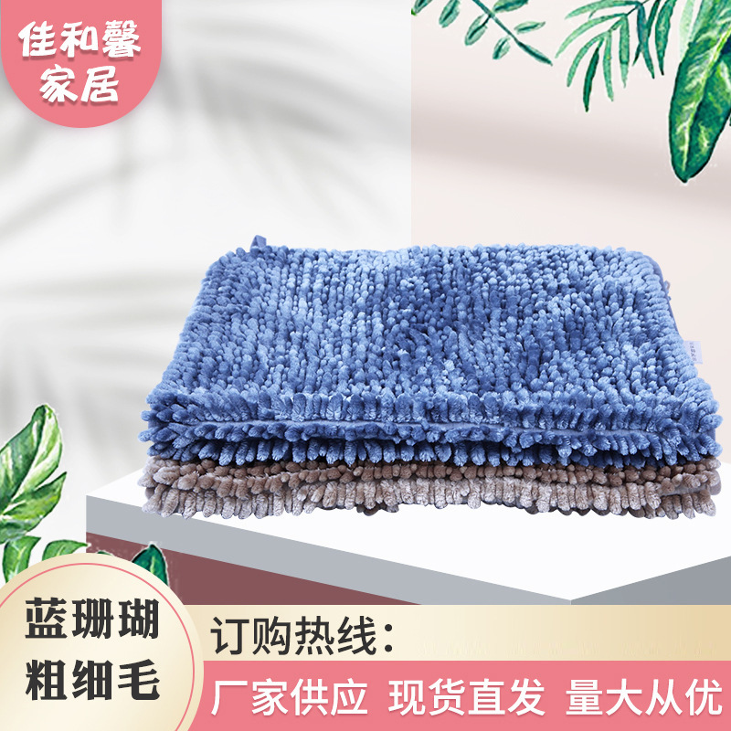 跨境批发蓝珊瑚粗细毛地垫客厅茶几卫生间吸水垫纯色防滑家用脚垫