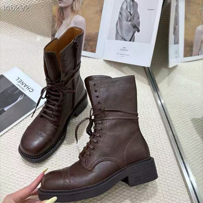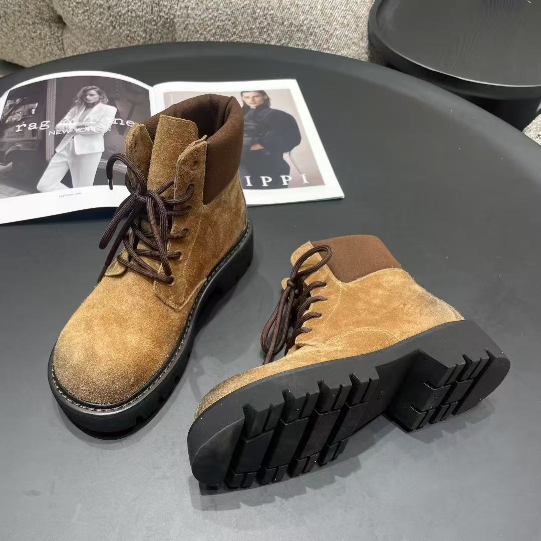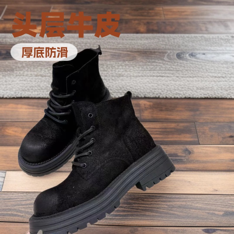 莱熙妮马丁靴女做旧2025秋季新款复古西部牛仔靴真皮厚底英伦风