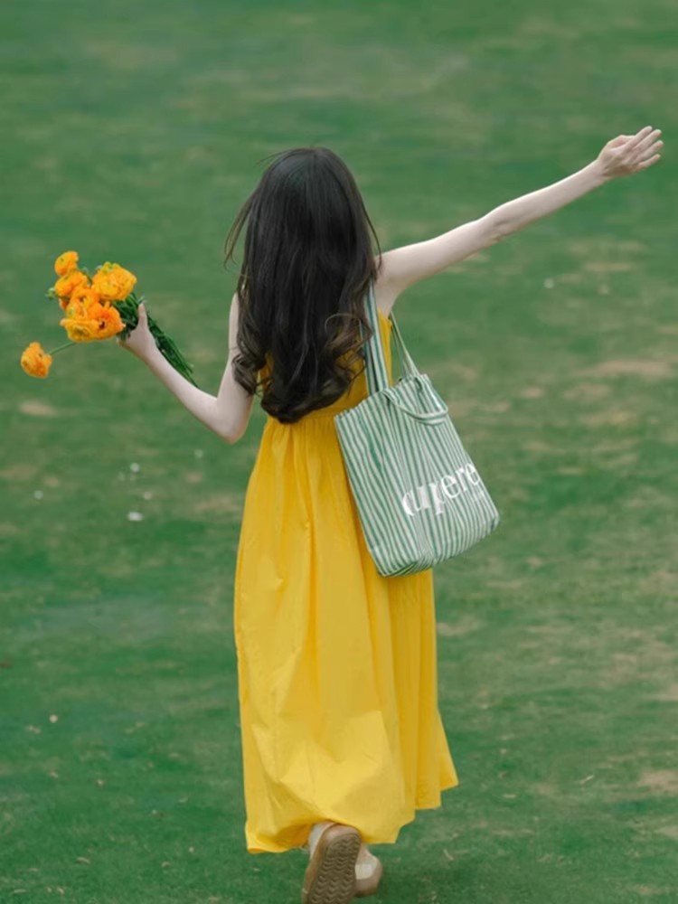 西西里风情吊带连衣裙女夏绝美氛围感海边旅游度假穿搭拍照长裙子