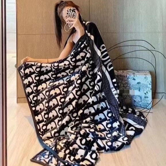 外贸跨境 潮牌毛毯D家法莱绒毯子办公室午休毯子休闲旅行毯礼盒装
