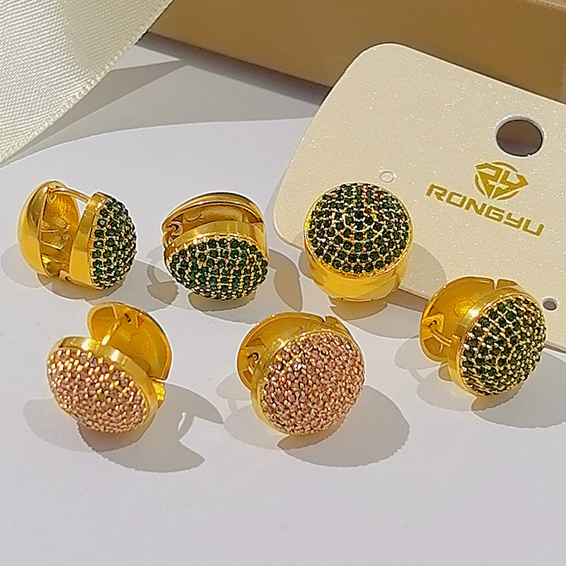 欧美法式优雅彩色圆形立体耳扣 简约气质不锈钢耳饰跨境厂家直供