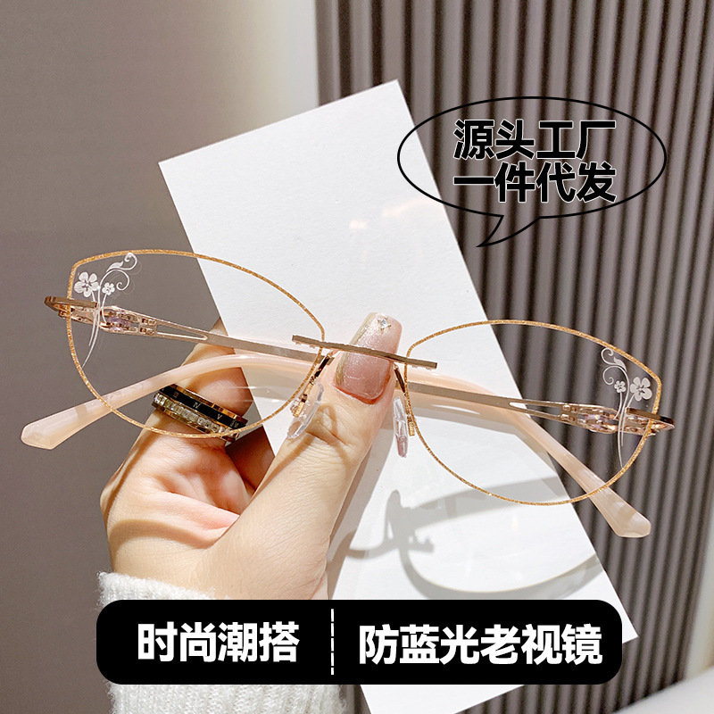满天星无边框切边轻奢圆框显脸小潮款时尚女士无框老花眼镜防蓝光