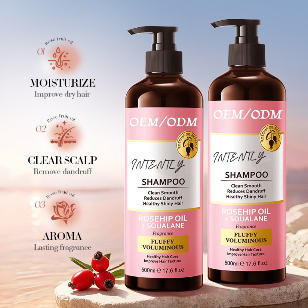 OEM跨境英文洗发水玫瑰果油去屑洗发露蓬松清洁头发Shampoo外贸