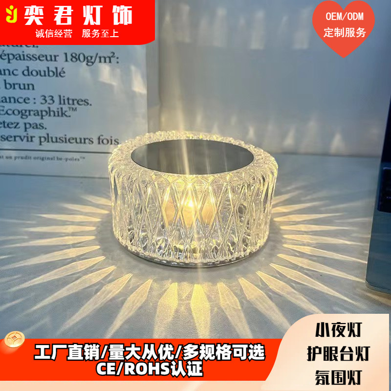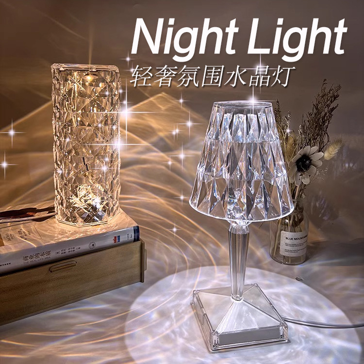 亚马逊高颜值钻石水晶台灯卧室酒吧酒店温馨小夜灯拍拍灯工厂直销