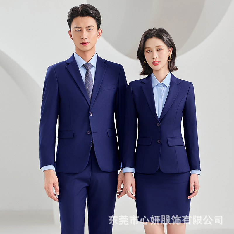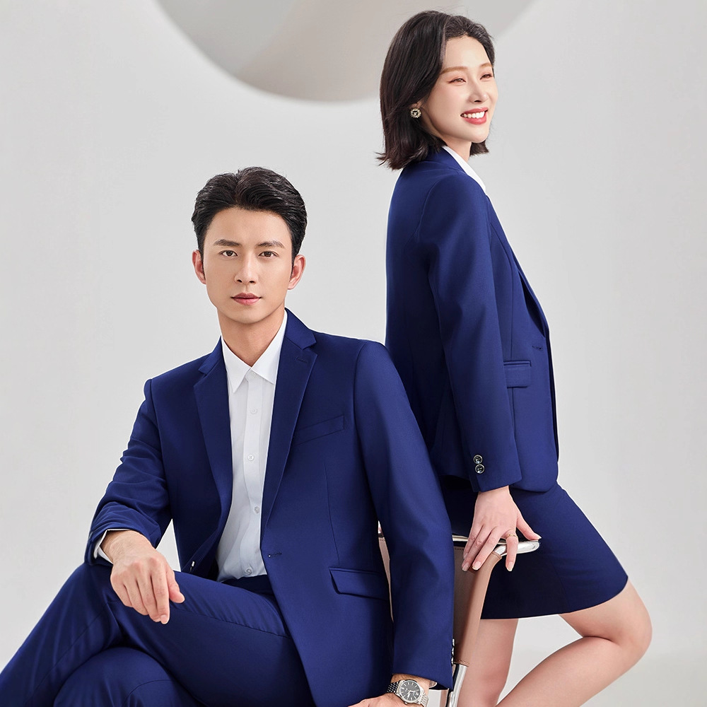 宝蓝色西装套装商务正装西服外套男女同款公务员面试工装酒店经理