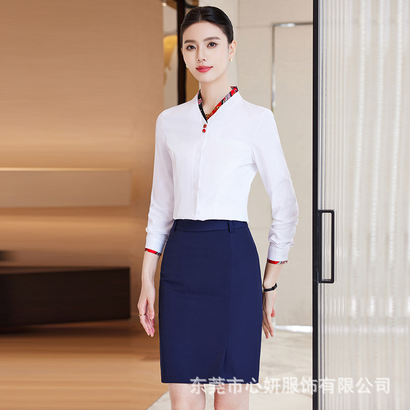 酒店餐饮服务员工作服秋季职业白色衬衫女珠宝服务员工装美容院工