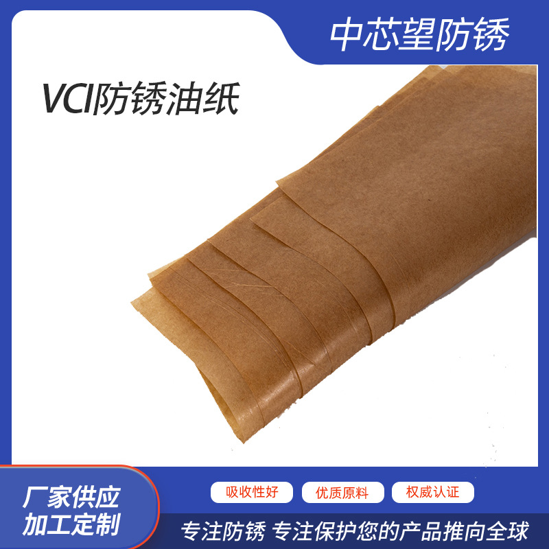 VCI覆膜防锈纸 轴承机器零件防潮防腐油蜡牛皮纸定制加工