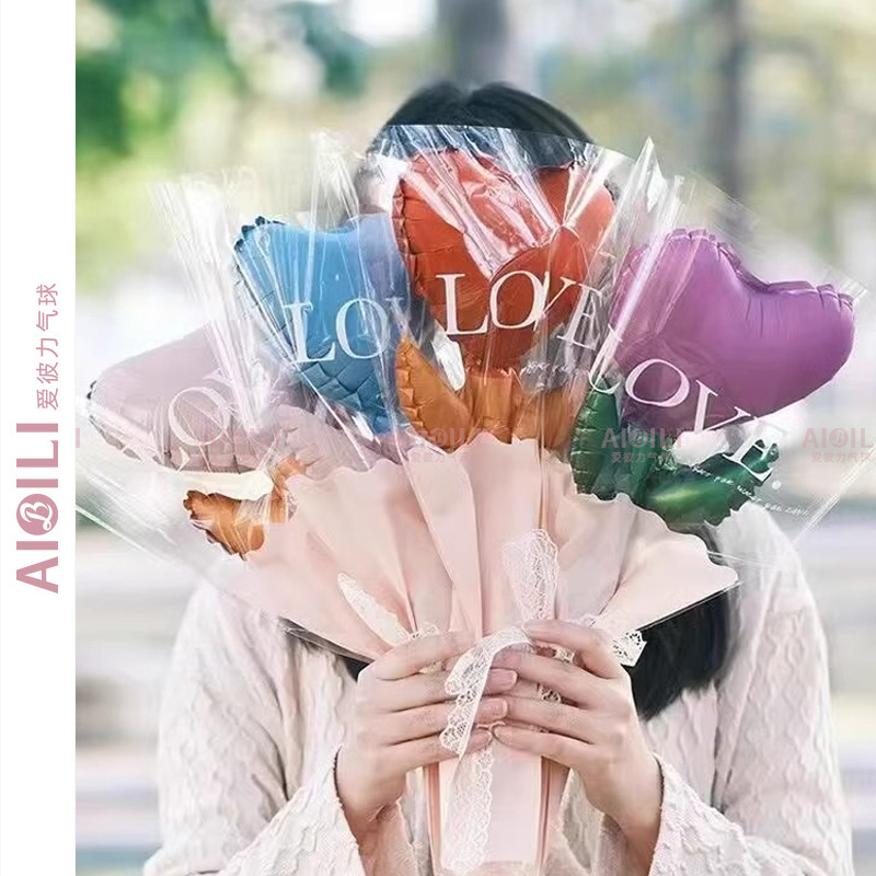 七夕气球爱心花束情人节七夕节摆摊小礼物送女朋友气球花拍照道具