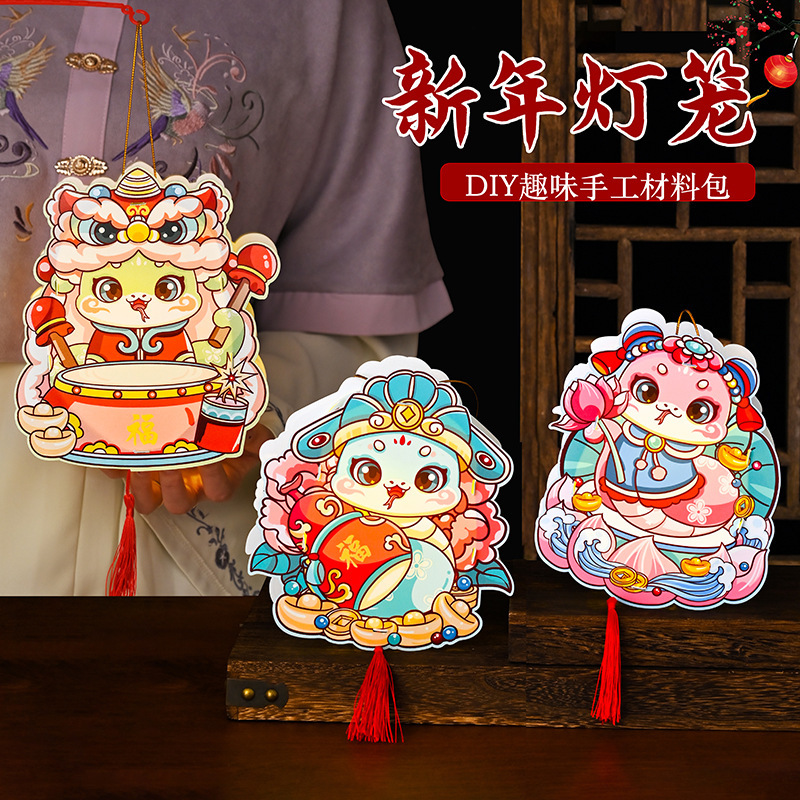 新年灯笼手工diy材料包儿童手提花灯2025新款春节过蛇年发光挂饰