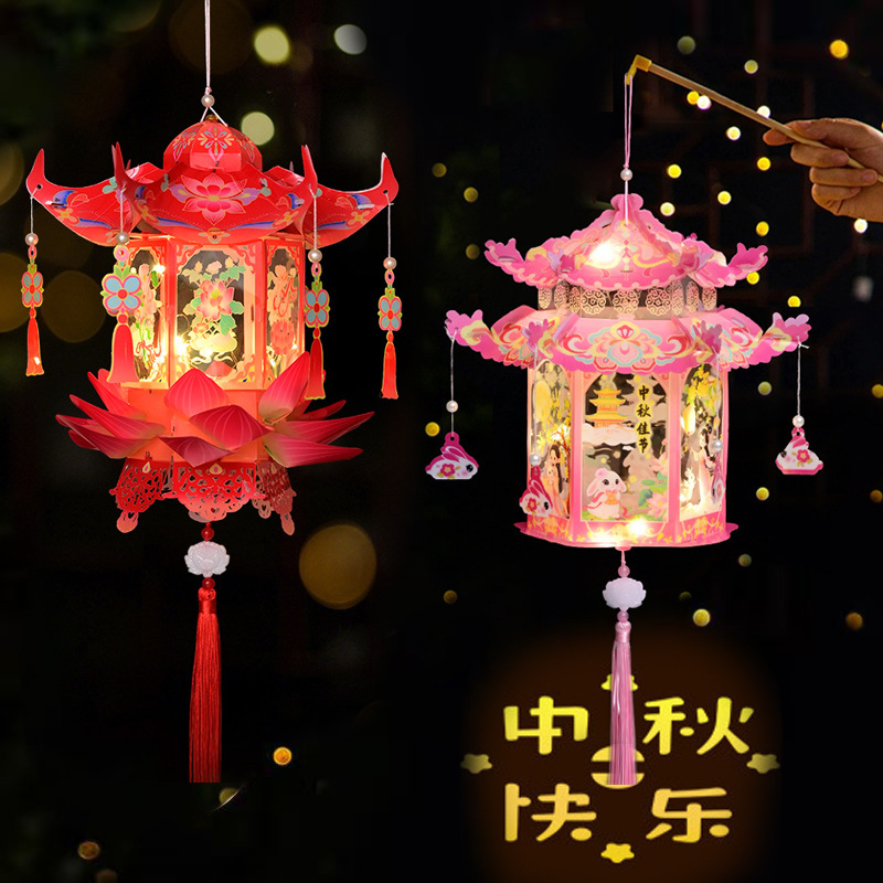 2025年新款儿童手提灯笼手工diy材料包中秋节花灯发光古风小宫灯