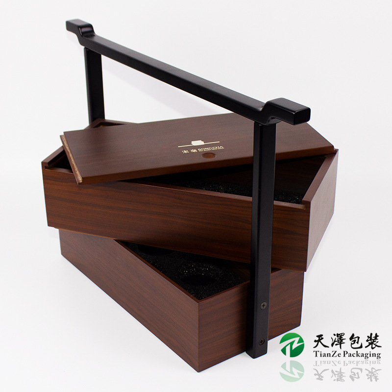 高档实木盒双层礼盒商务礼品包装盒茶叶点心手提礼品盒哑光油漆木