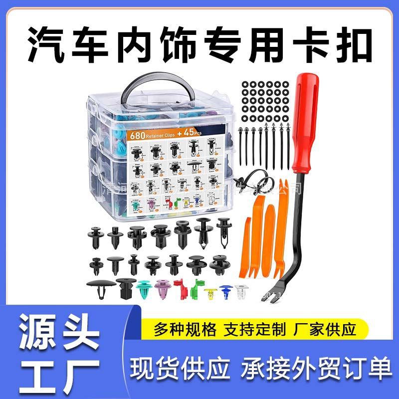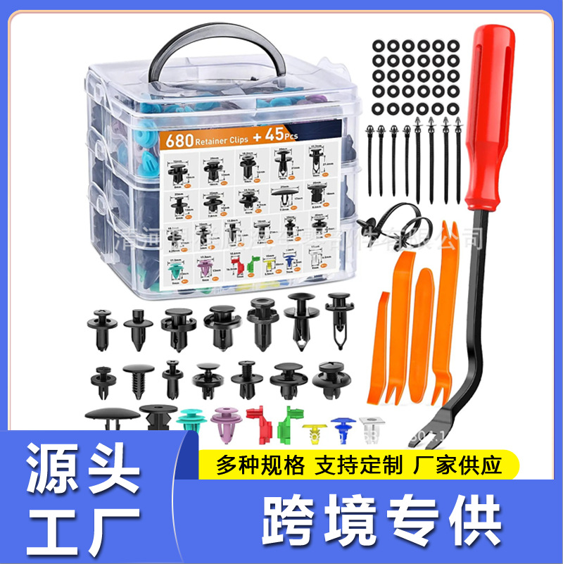 【跨境外贸】680pcs盒装卡扣汽车膨胀螺丝塑料卡子门板挡泥板套厂