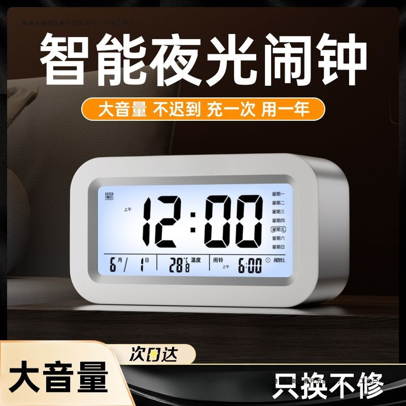 大音量闹钟学生夜光闹钟静音创意儿童闹钟高中生时钟