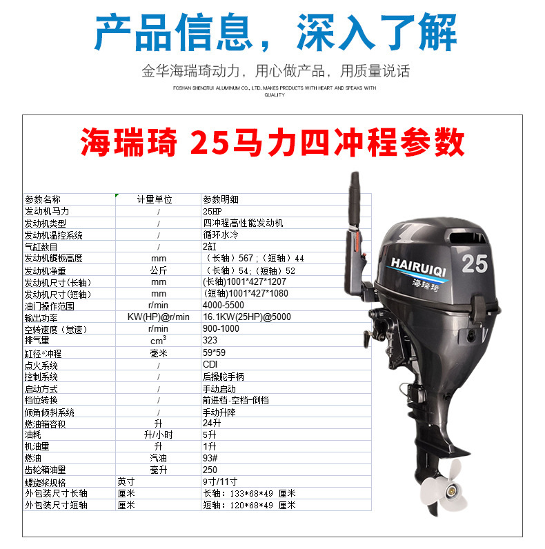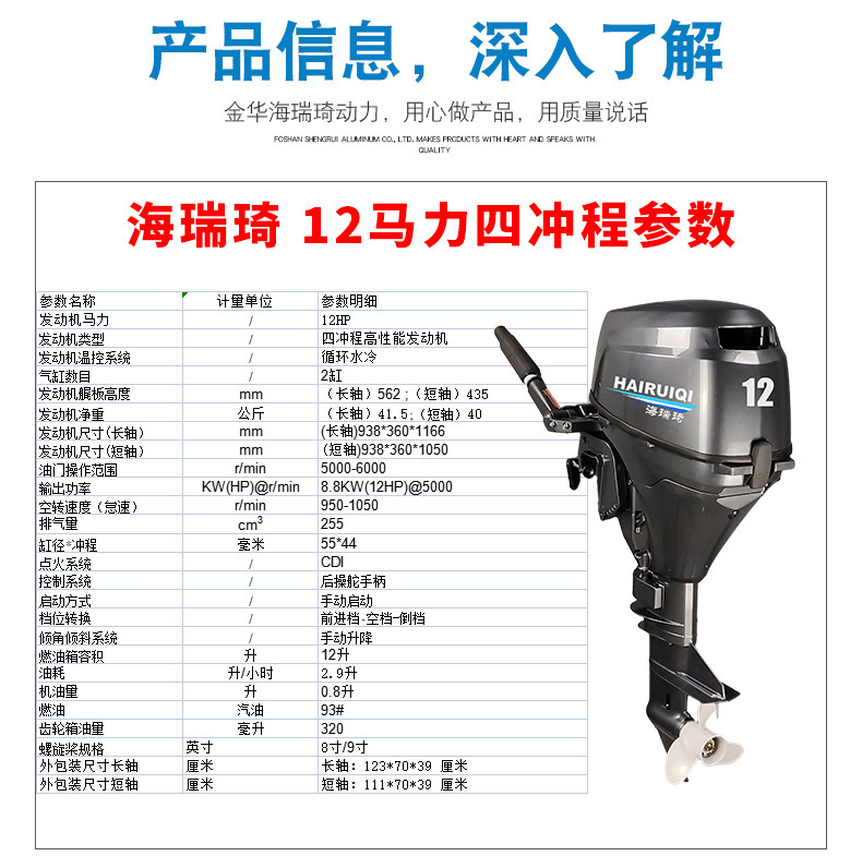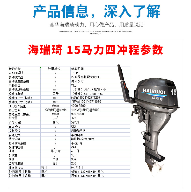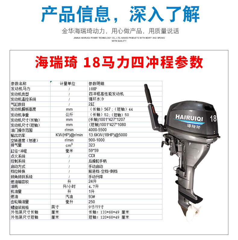 海瑞琦18马力四冲程船外机钓渔船用舷外机橡皮艇船挂机船用挂浆