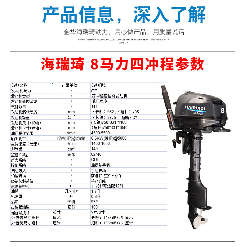 8马力四冲程船外机 钓渔船用舷外机 橡皮艇船挂机 水上船用挂浆机