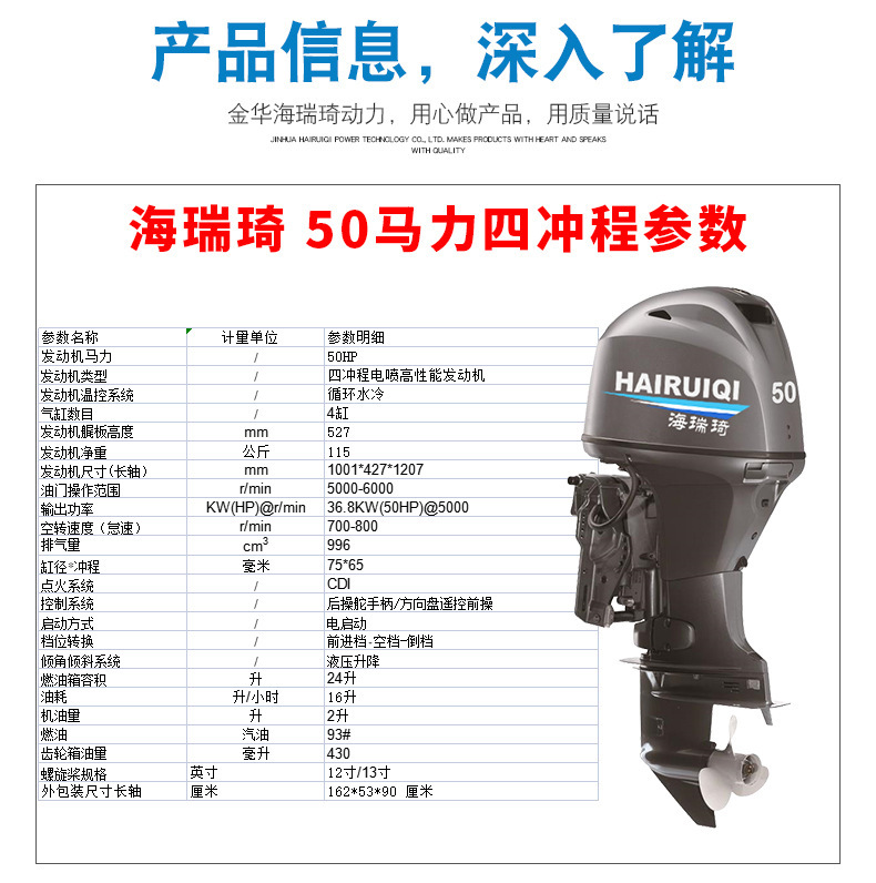 50马力四冲程船外机 钓渔船用舷外机 橡皮艇船挂机 水上船用挂浆