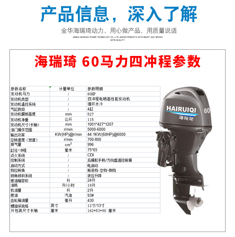 60马力四冲程船外机 钓渔船用舷外机 橡皮艇船挂机 水上船用挂浆