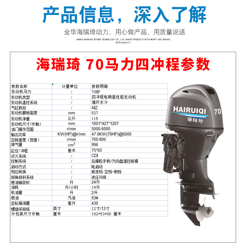 70马力四冲程船外机 电启动 钓渔船用舷外机 液压蹊跷 橡皮艇船