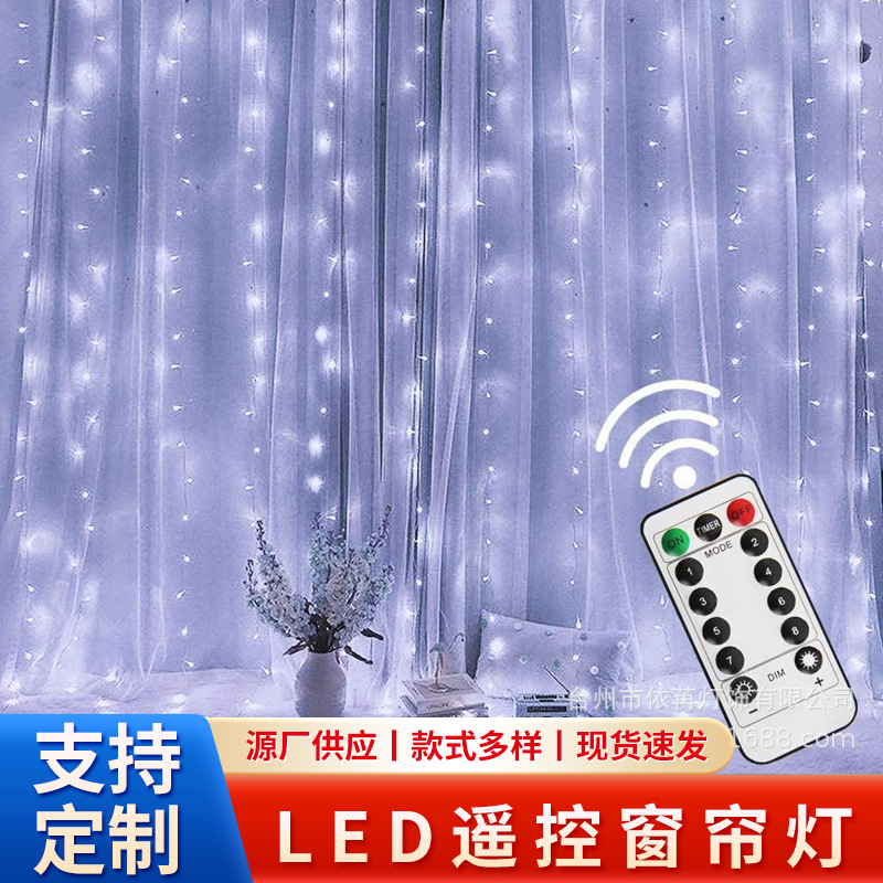 led窗帘灯3*3米遥控定时USB铜线灯串圣诞节日房间装饰彩灯花环灯