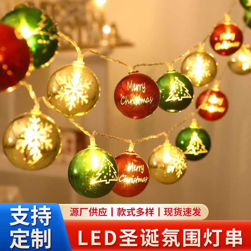 跨境LED圣诞树装饰灯串 圣诞五角星电镀挂件节日氛围装饰彩灯批发