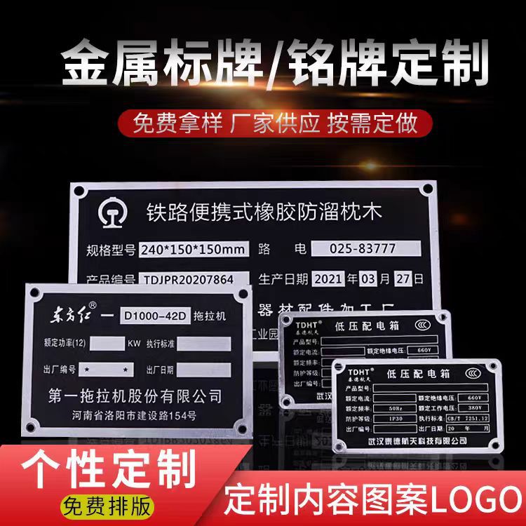 金属标牌定制铝标牌弧度铭牌logo金属铝标贴凹凸标牌丝印平面