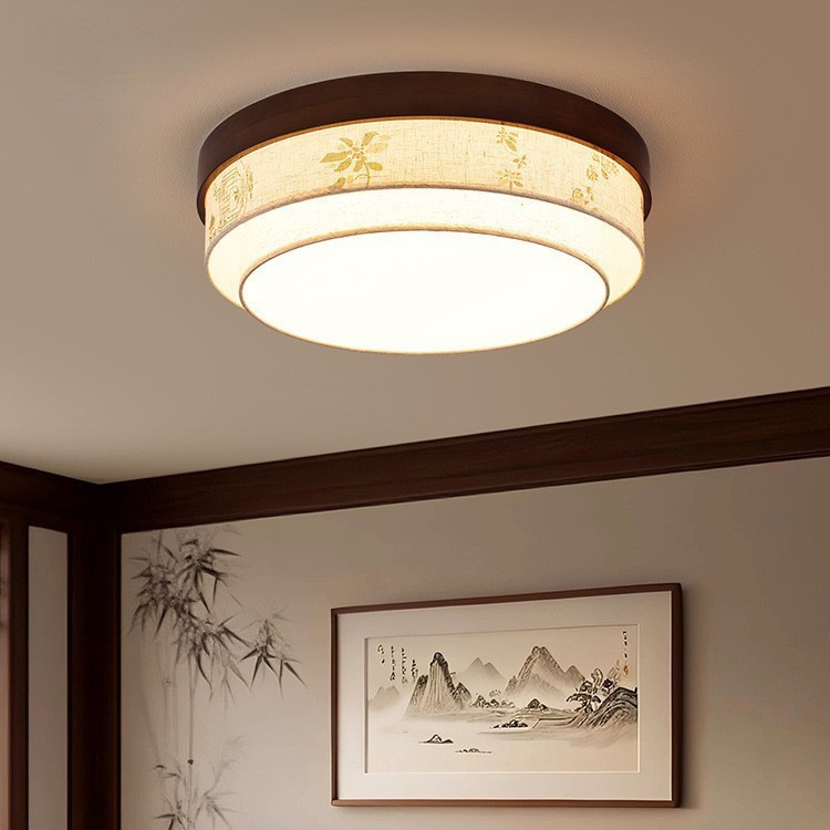 日式中古风主卧百褶吸顶吊灯美式复古胡桃木纹色新中式卧室房间灯