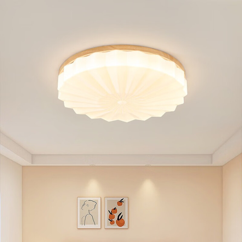 百褶奶油原木风主卧室灯温馨浪漫网红房间灯具护眼led卧室吸顶灯