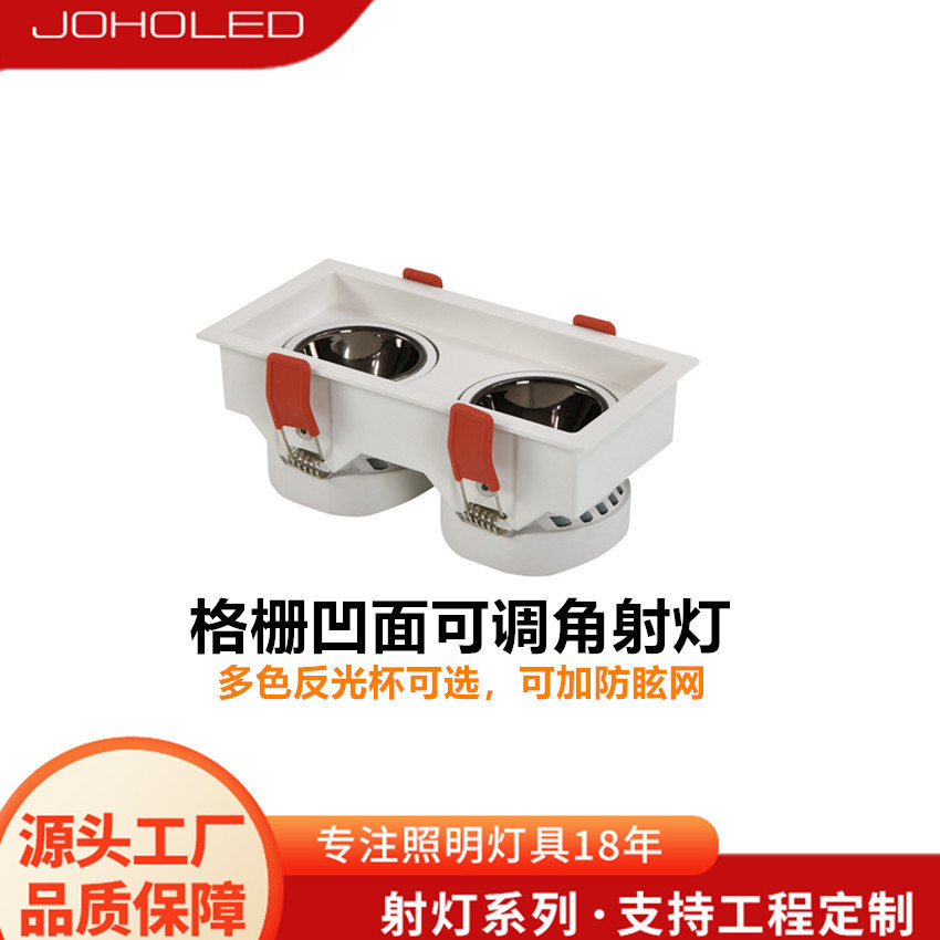 工厂批发嵌入式10W单头双头格栅凹面射灯工装家装COB天花射灯节能