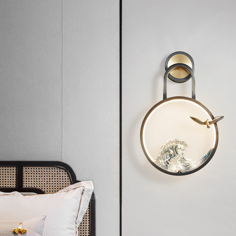 新款新中式床头卧室壁灯 全铜禅意客厅背景墙现代简约过道灯