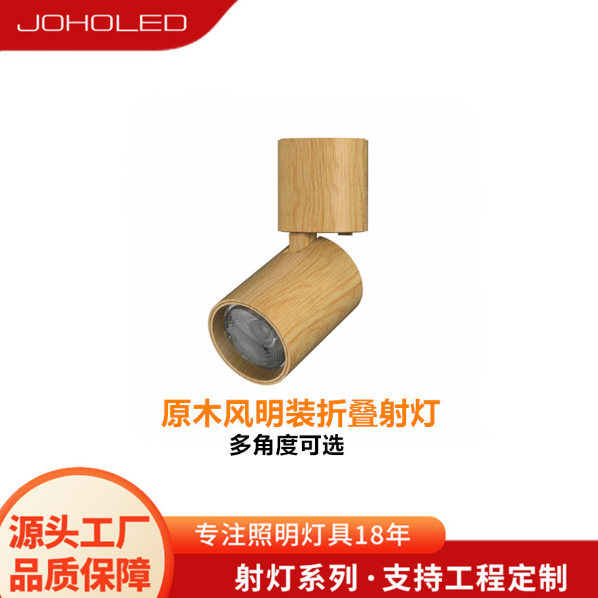 工厂批发新款原木风明装吸顶免开孔折叠式12W 橡木色配色天花射灯
