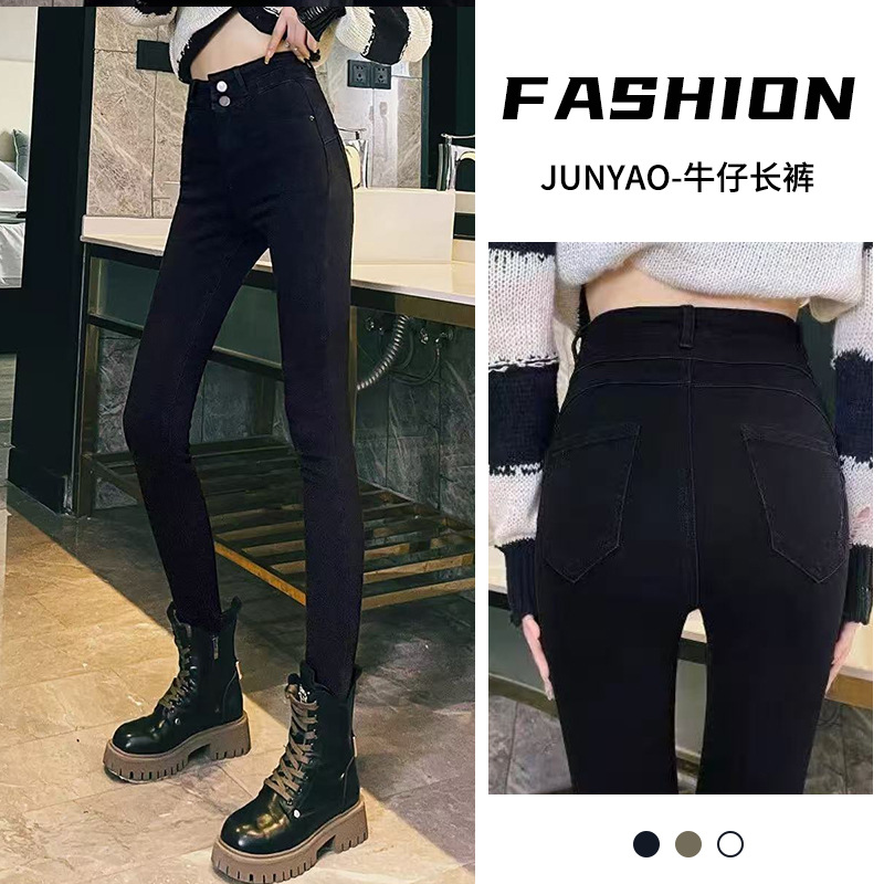 新款黑色高腰牛仔裤女 修身小脚裤韩版潮流紧身小脚铅笔裤牛仔裤