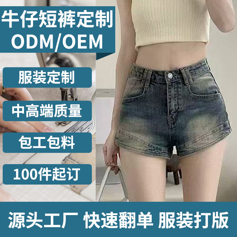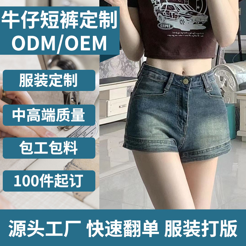 广东服装工厂批发牛仔裤女辣妹做旧牛仔短裤复古高腰弹力显瘦短裤