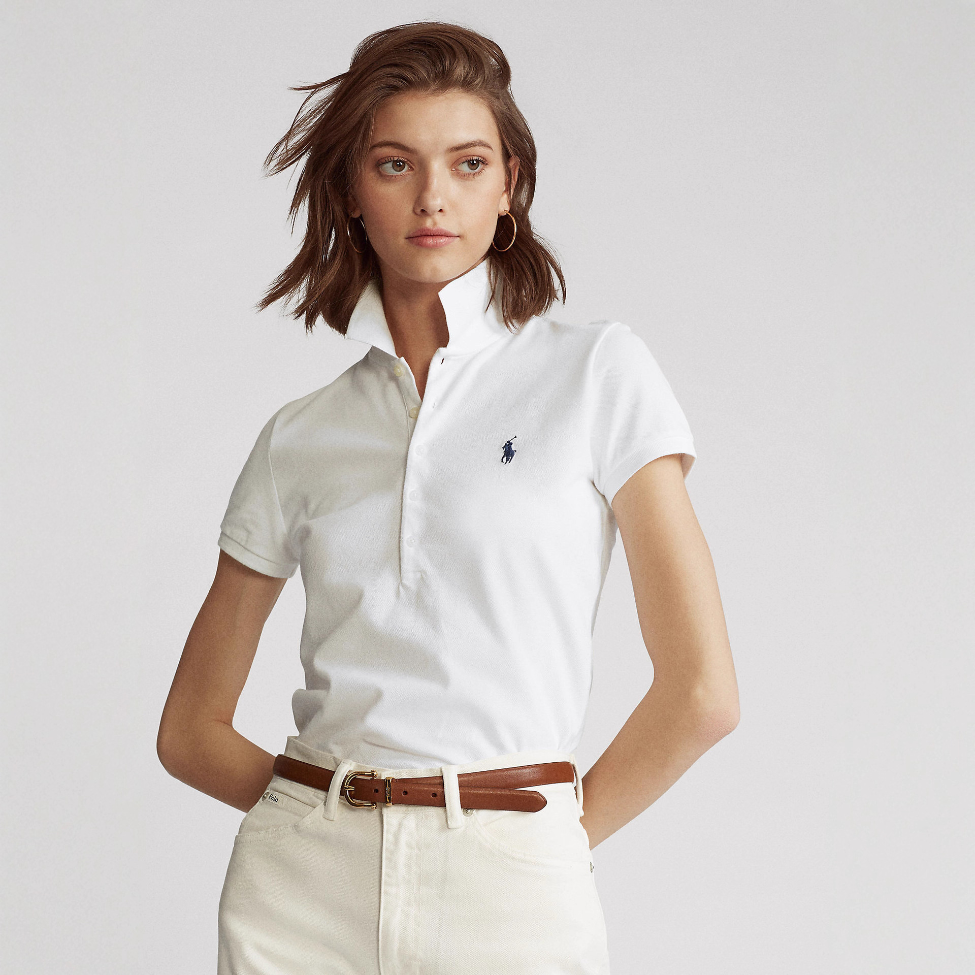 跨境新款女装夏季5扣小马翻领刺绣纯色大码修身短袖t恤经典POLO衫