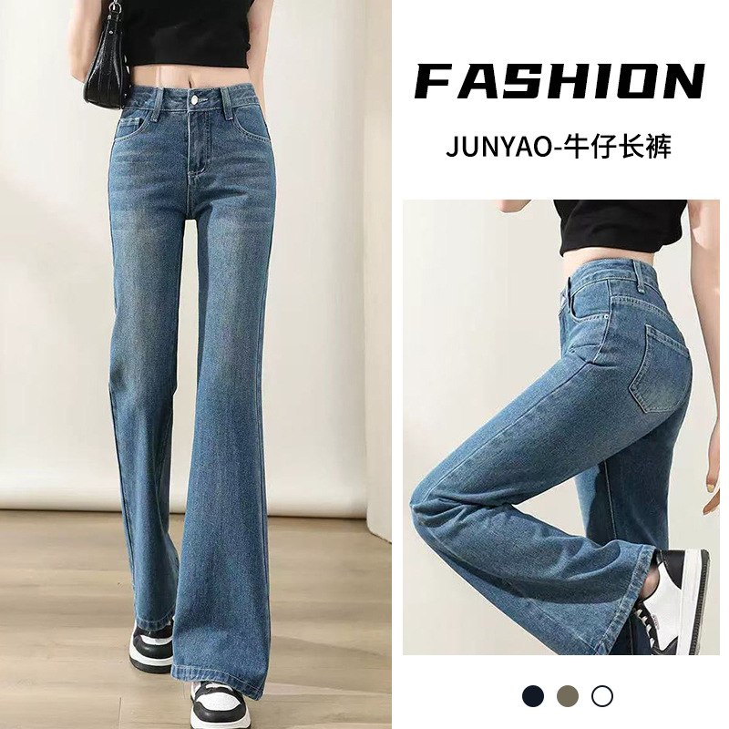 批发高腰微喇牛仔裤女 2025秋季新款黑色显瘦休闲喇叭裤牛仔长裤