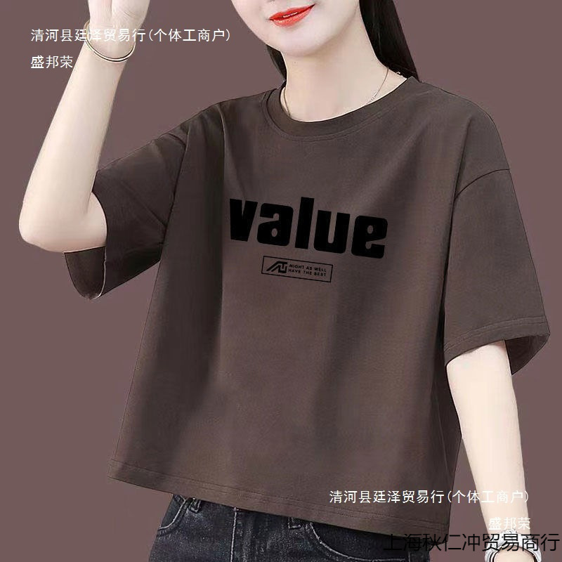 100纯棉短款恤女短袖韩版宽松2024新款矮个子女士高腰上衣体恤衫