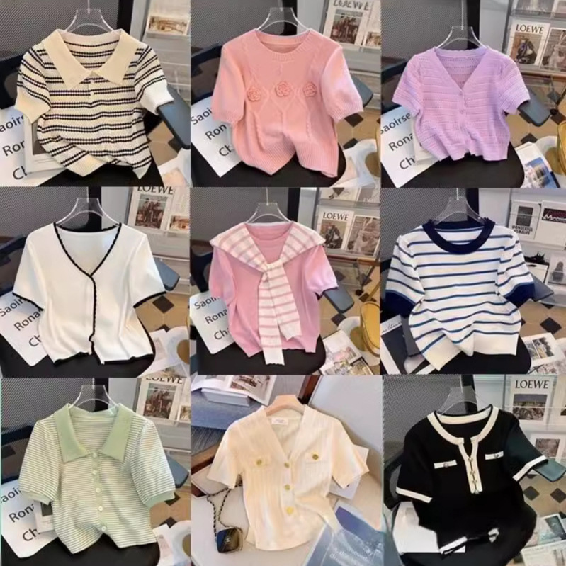 夏季女装针织短袖T恤外贸厂家夜市地摊货源批发直播小香款针织衫