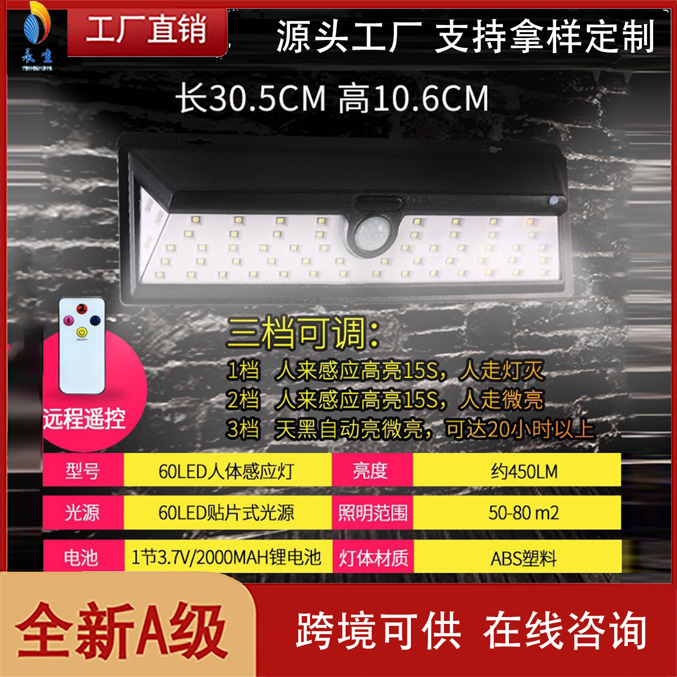 厂家货源房外部廊灯太阳能壁灯人体感应露天防水野营户外照明用具