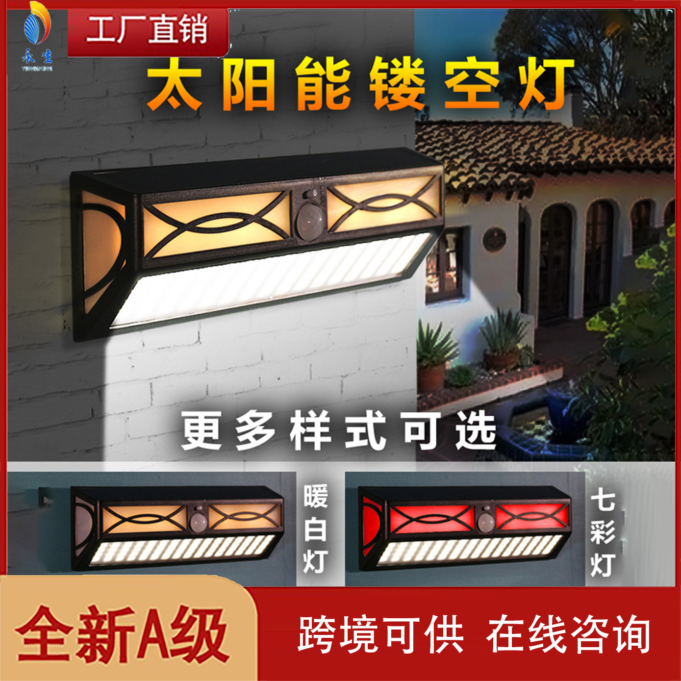 跨境可供太阳能镂空创意灯 室外照明LED人体感应灯家用户外庭院灯