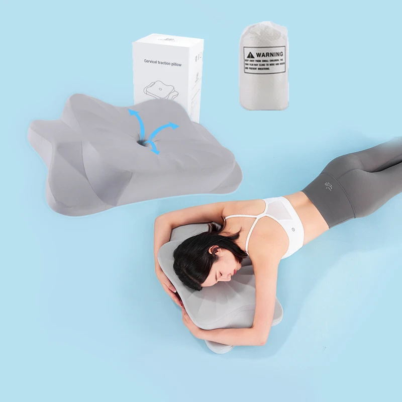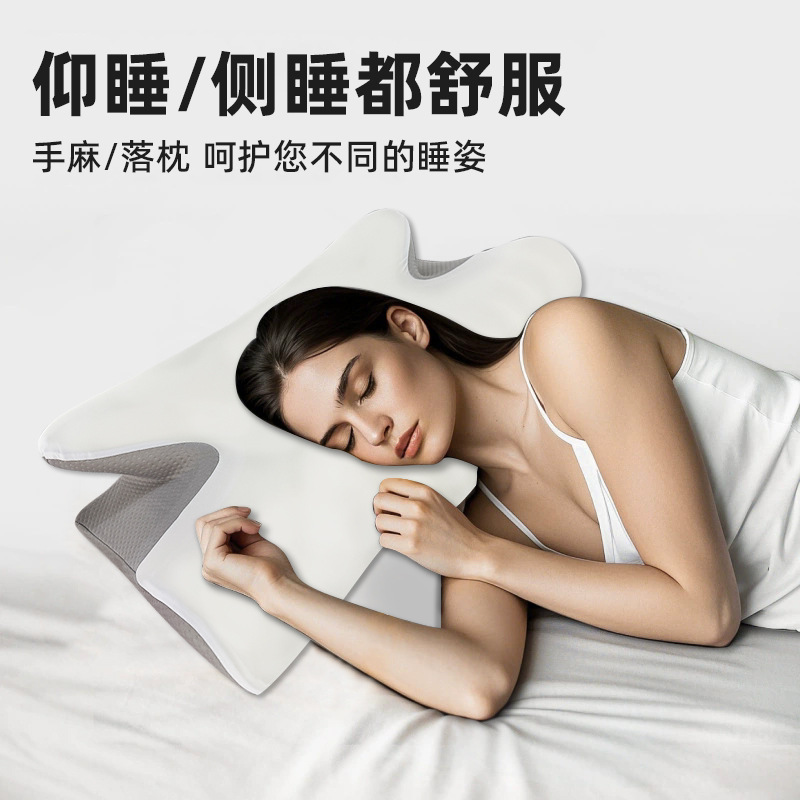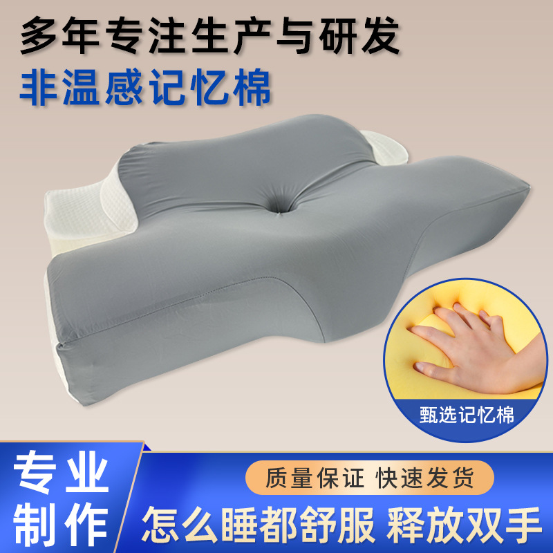 灰白色蝶形枕头家用多功能护颈枕睡眠枕头记忆棉高回弹记忆枕