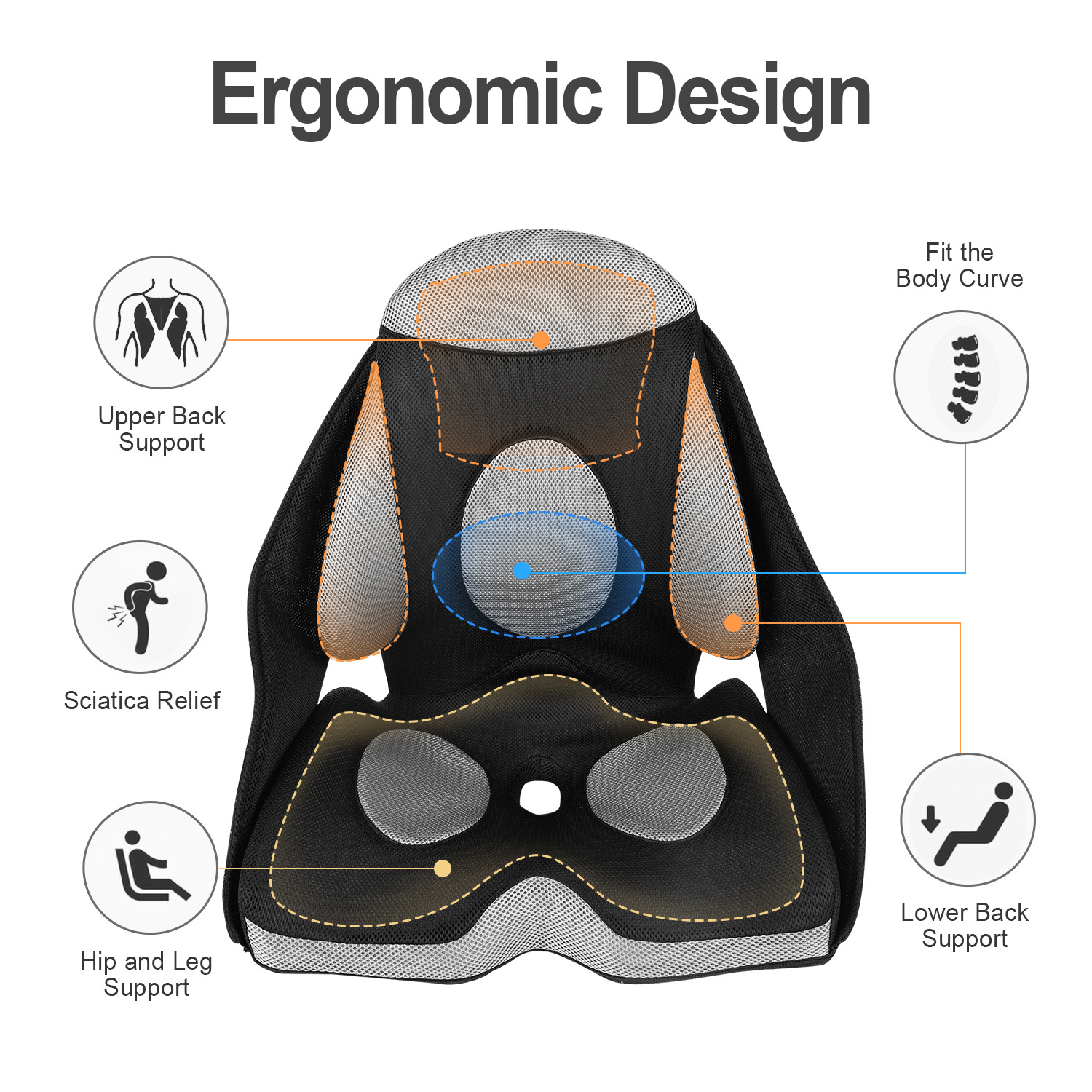 跨境记忆棉座椅四季通用护腰办公室靠垫上班久坐神器透气连体直销