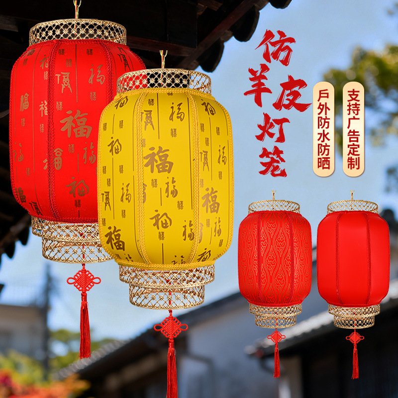 中式羊皮灯笼户外防水宫灯仿古装饰结婚阳台红灯笼灯室内吊灯挂饰