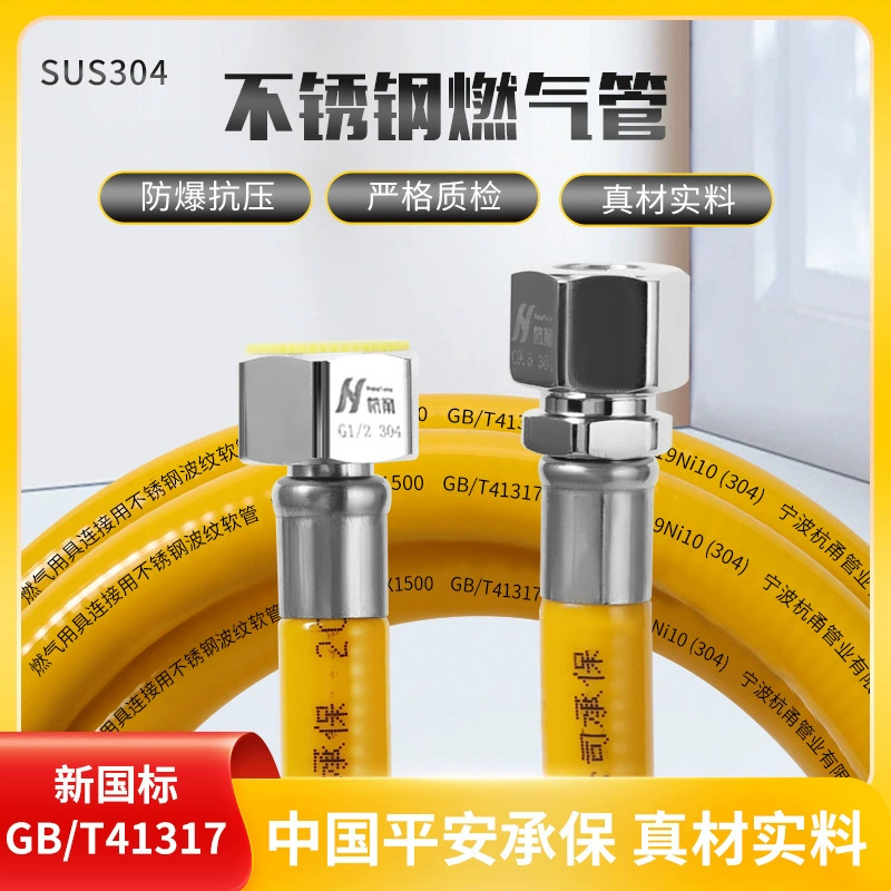 新国标防爆煤气管天然气液化气专用家用3分304不锈钢波纹燃气管