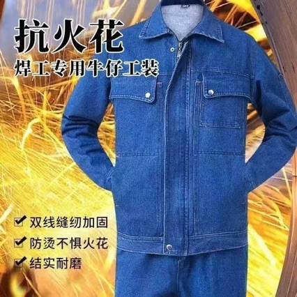 电焊焊工专用牛仔工作服男棉加厚防烫耐磨电焊工人汽修劳保工作服