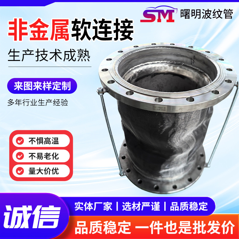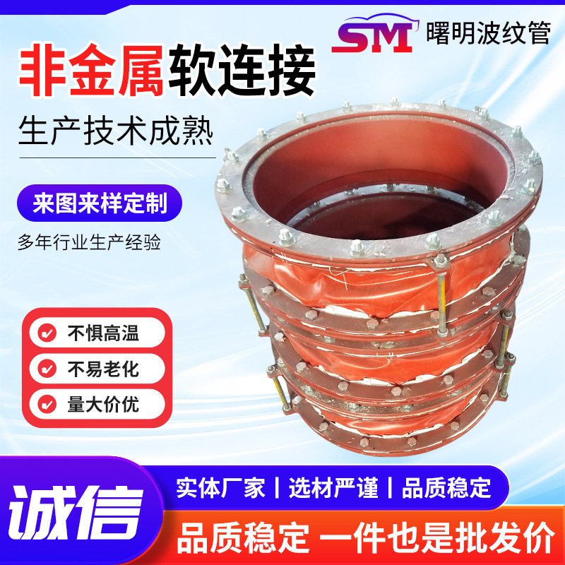 氟橡胶软连接厂家高温烟道耐酸碱柔性膨胀节硅橡胶非金属织物蒙皮