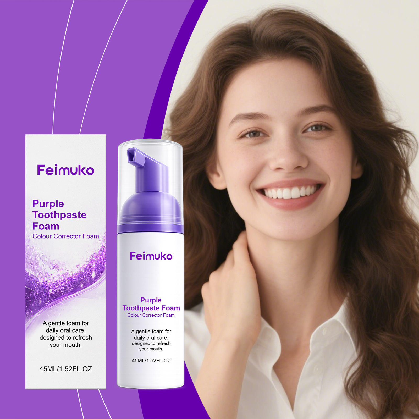 Feimuko紫色洁牙慕斯 泡沫丰富绵密清洁牙齿残渣污垢洁净清新口气
