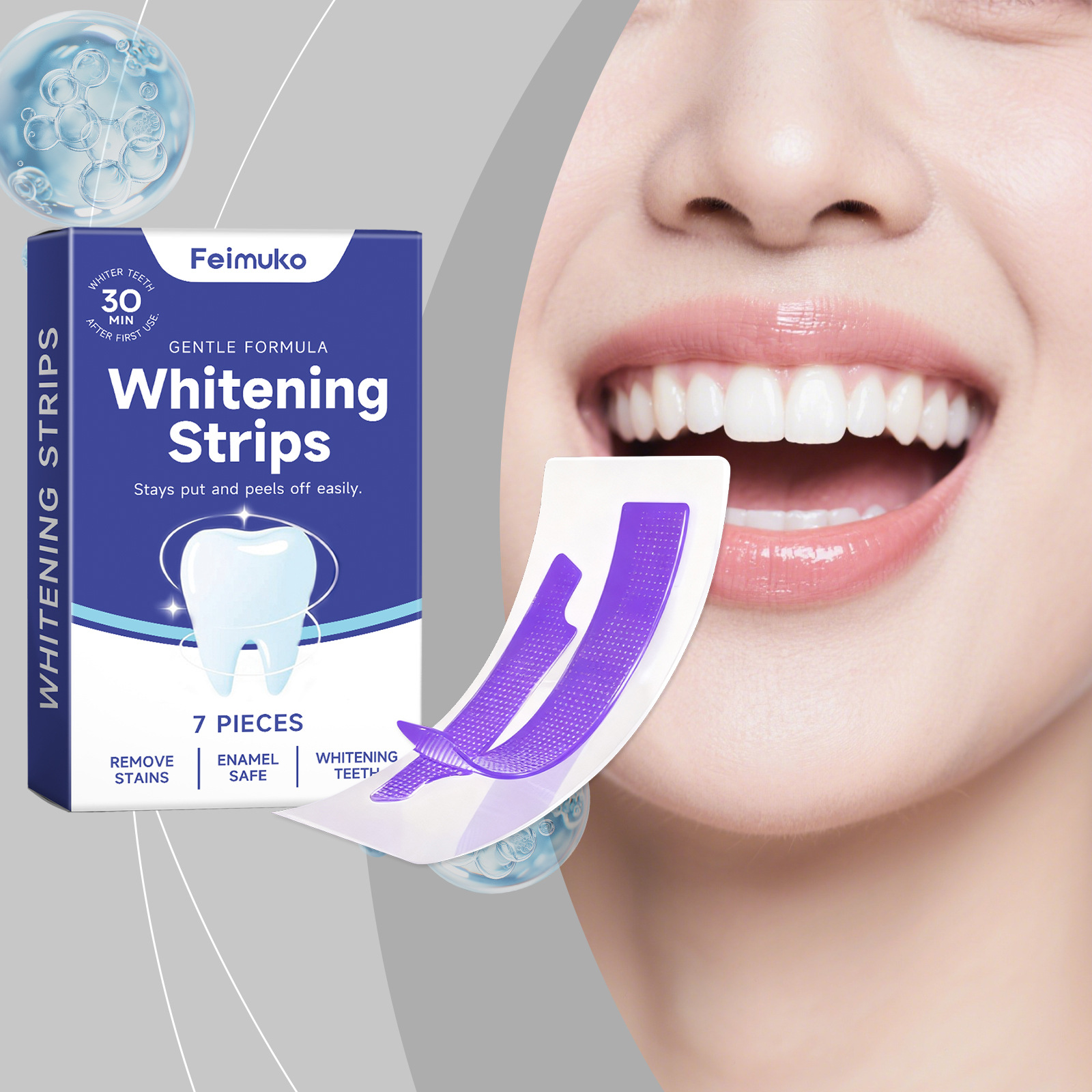 Feimuko 紫色牙齿护理贴 蕴含薄荷精华温和净渍清洁贴合无刺激