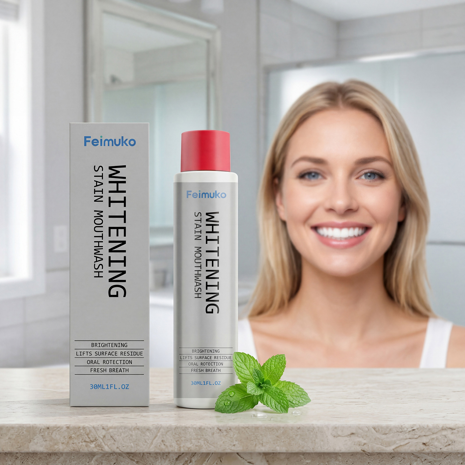 Feimuko 牙齿洁净漱口水 温和清洁表面牙渍口气清新日常口腔护理