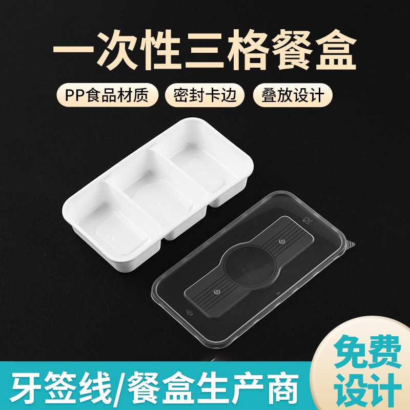 一次性餐盒三格外卖打包盒高档盒饭长方形双层分格饭盒日式便当盒