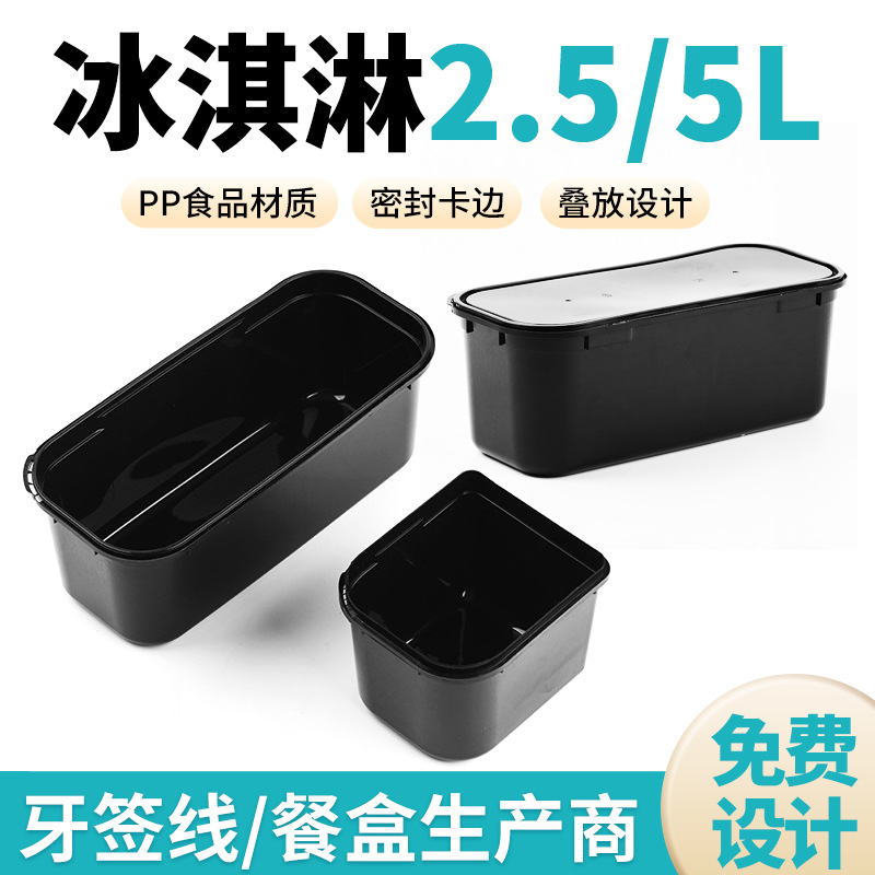 长方形冰淇淋盒商用带盖塑料盒小方桶外卖一次性打包盒带盖